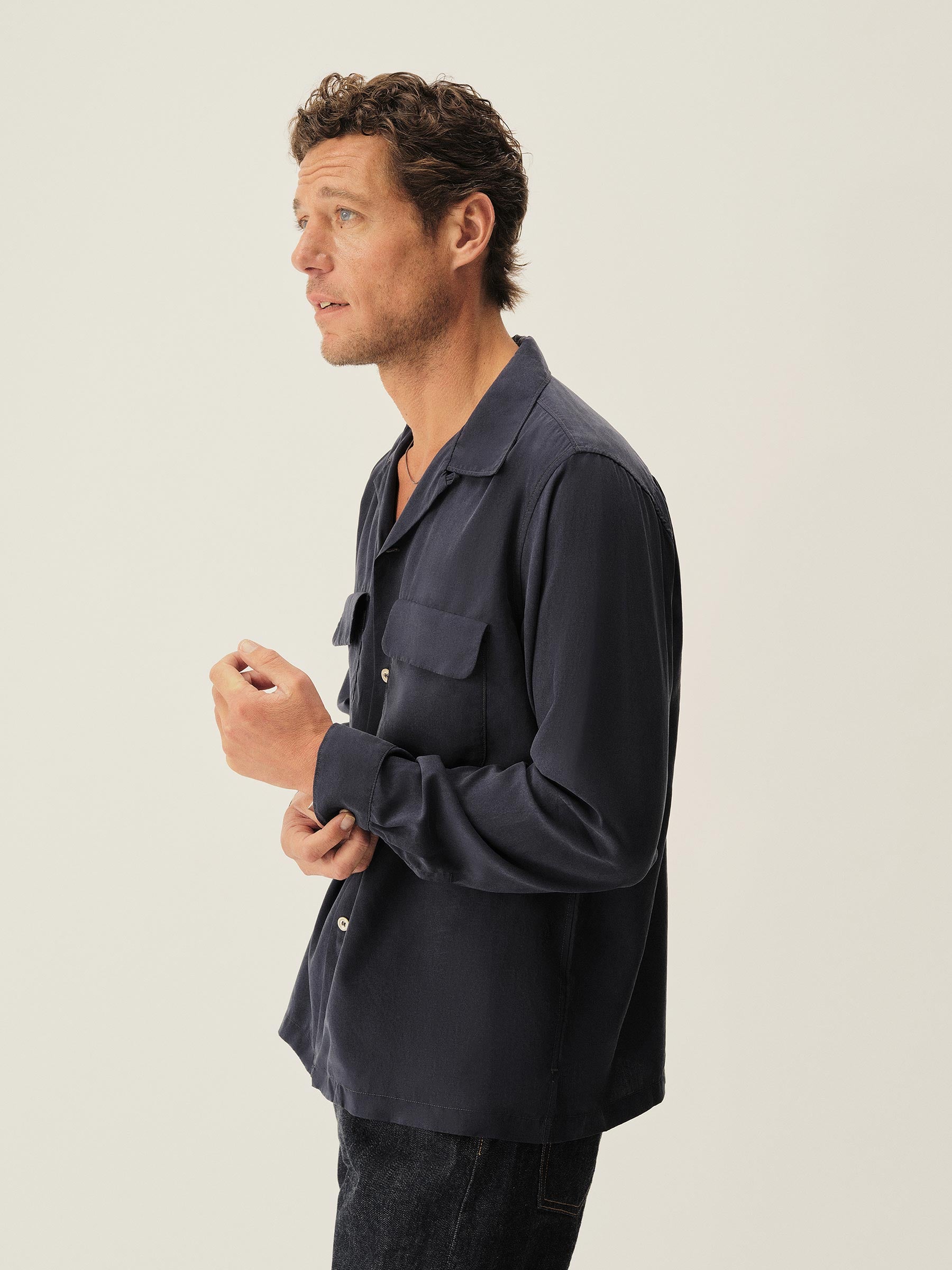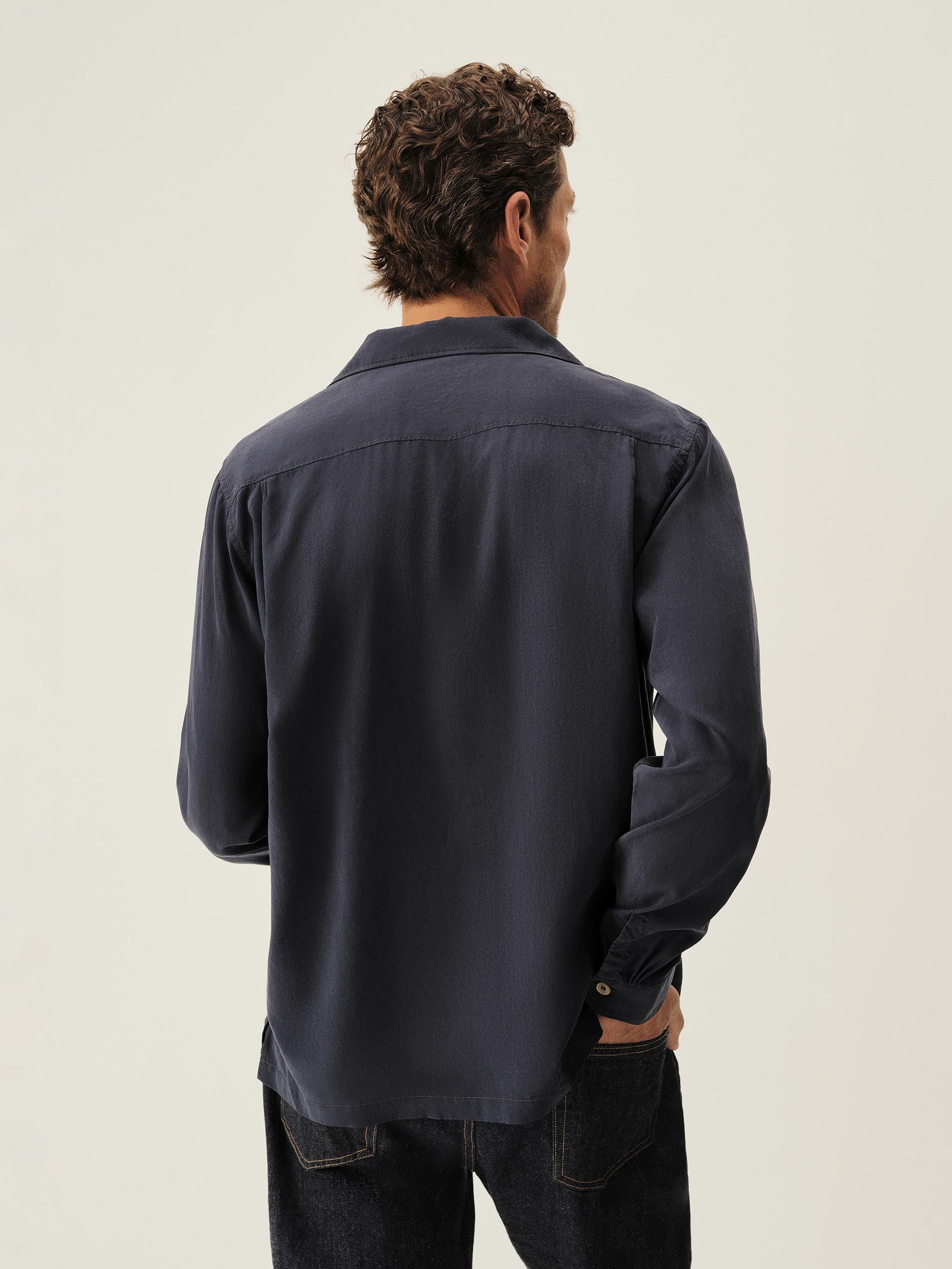 A lightweight and breathable vintage-inspired camp shirt, cut from a breezy, yarn-dyed natural fabric with period details throughout.