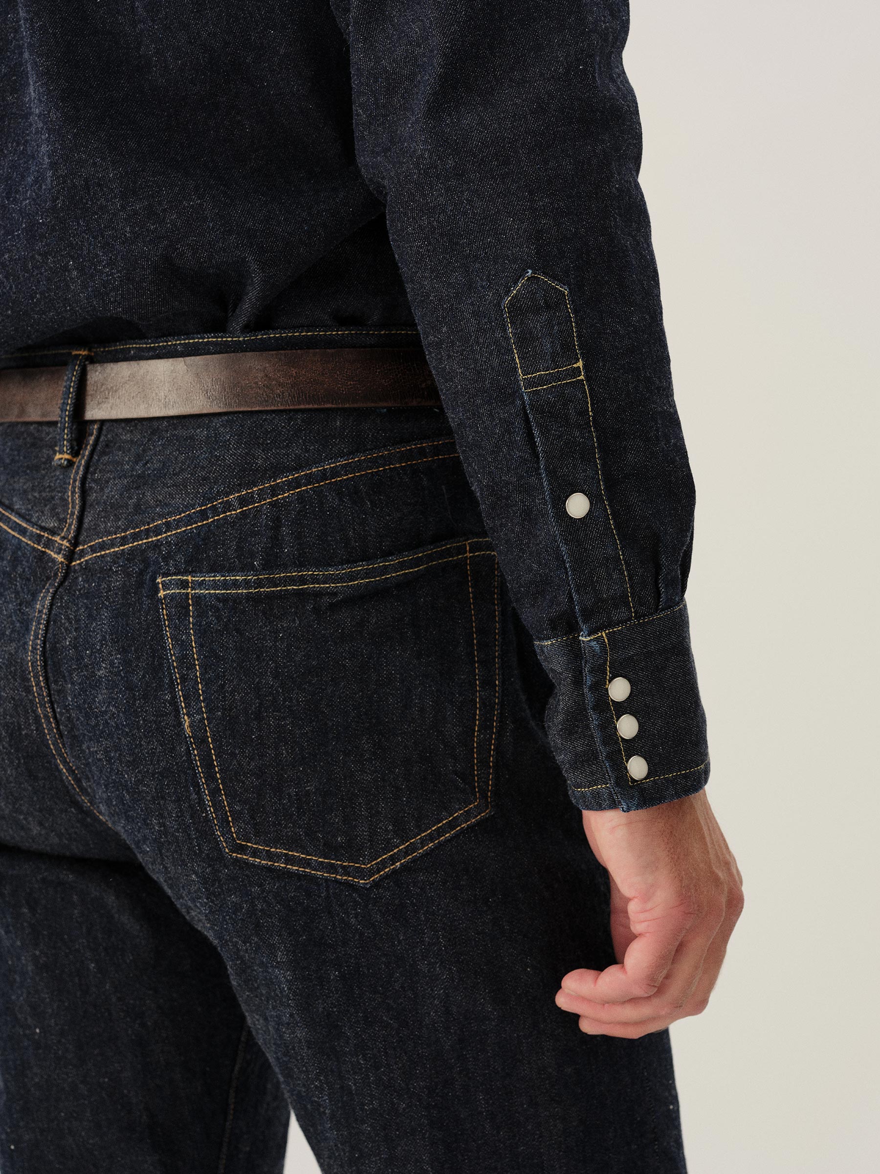 Comfortable, classic fit 1950’s style sawtooth western shirt cut from 100% cotton Japanese denim.