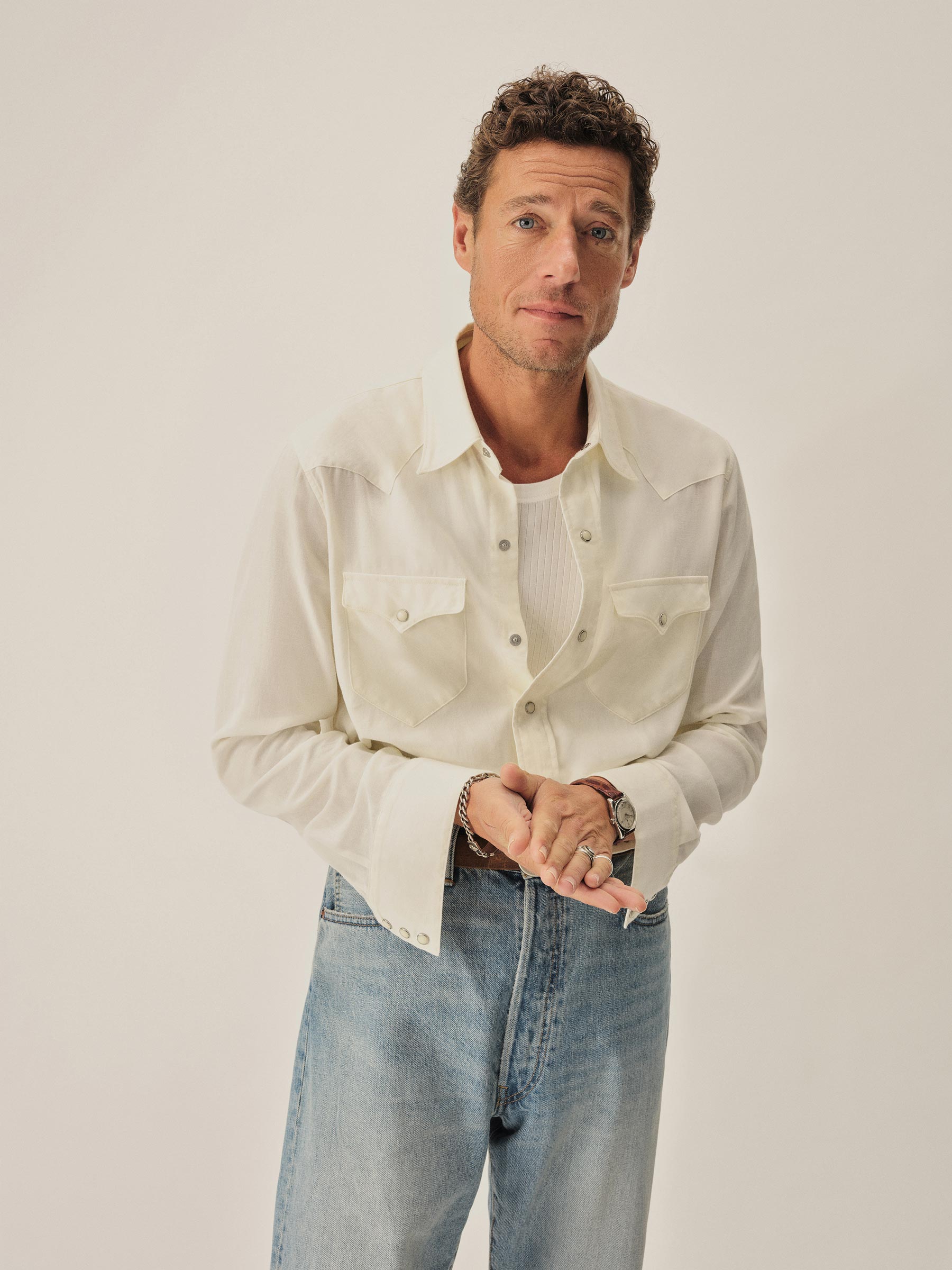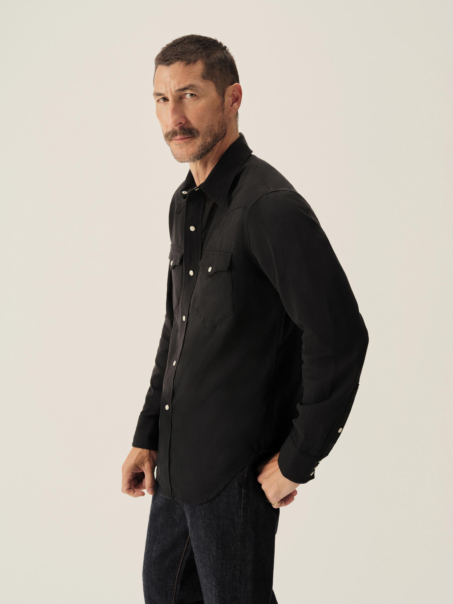 A classic fit, springweight cotton and wool blend western shirt with all of the classic cowboy details.