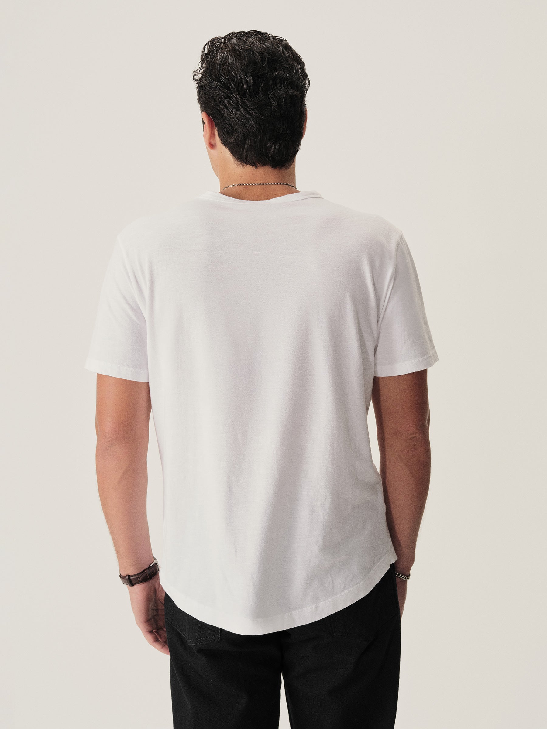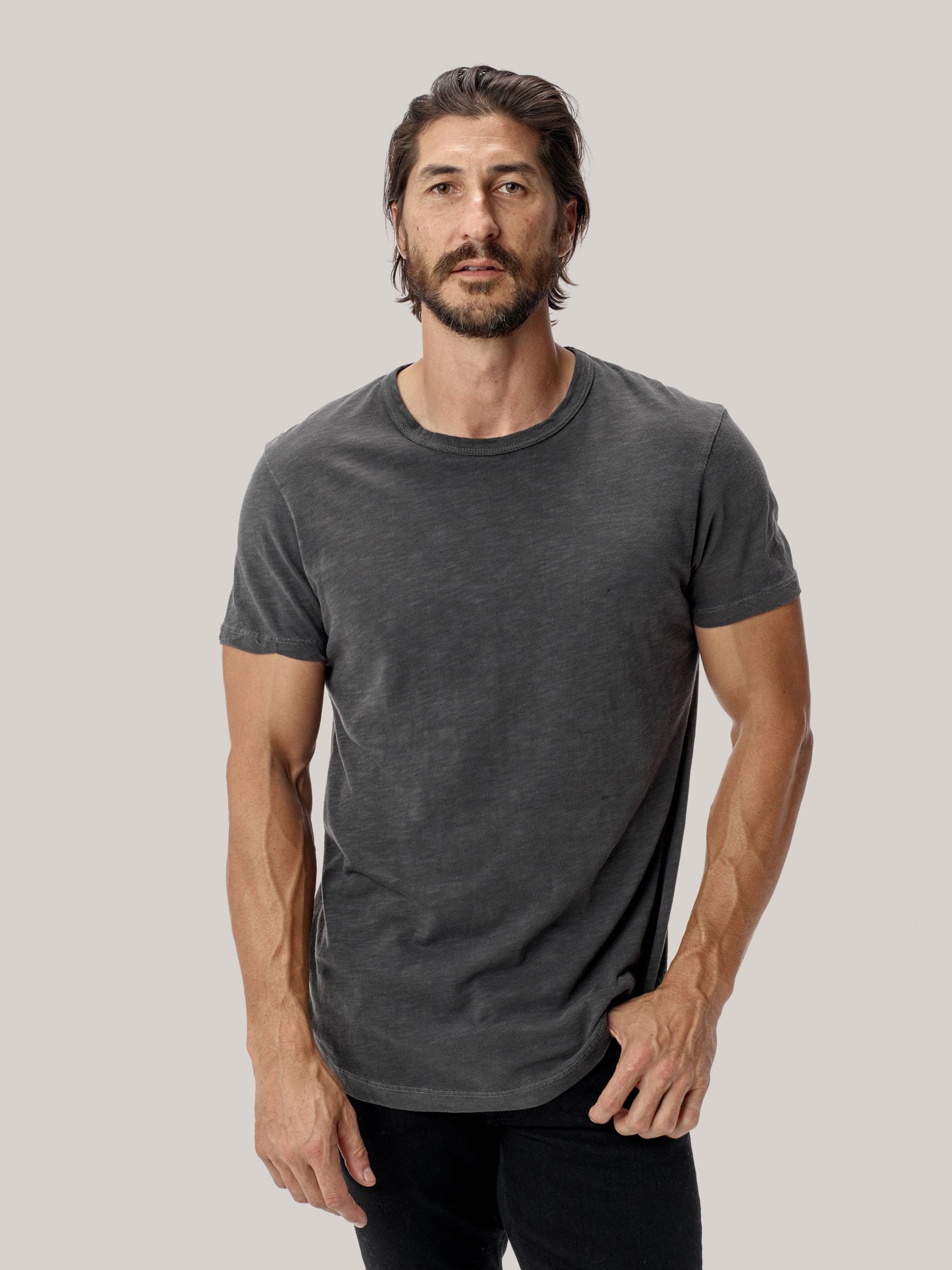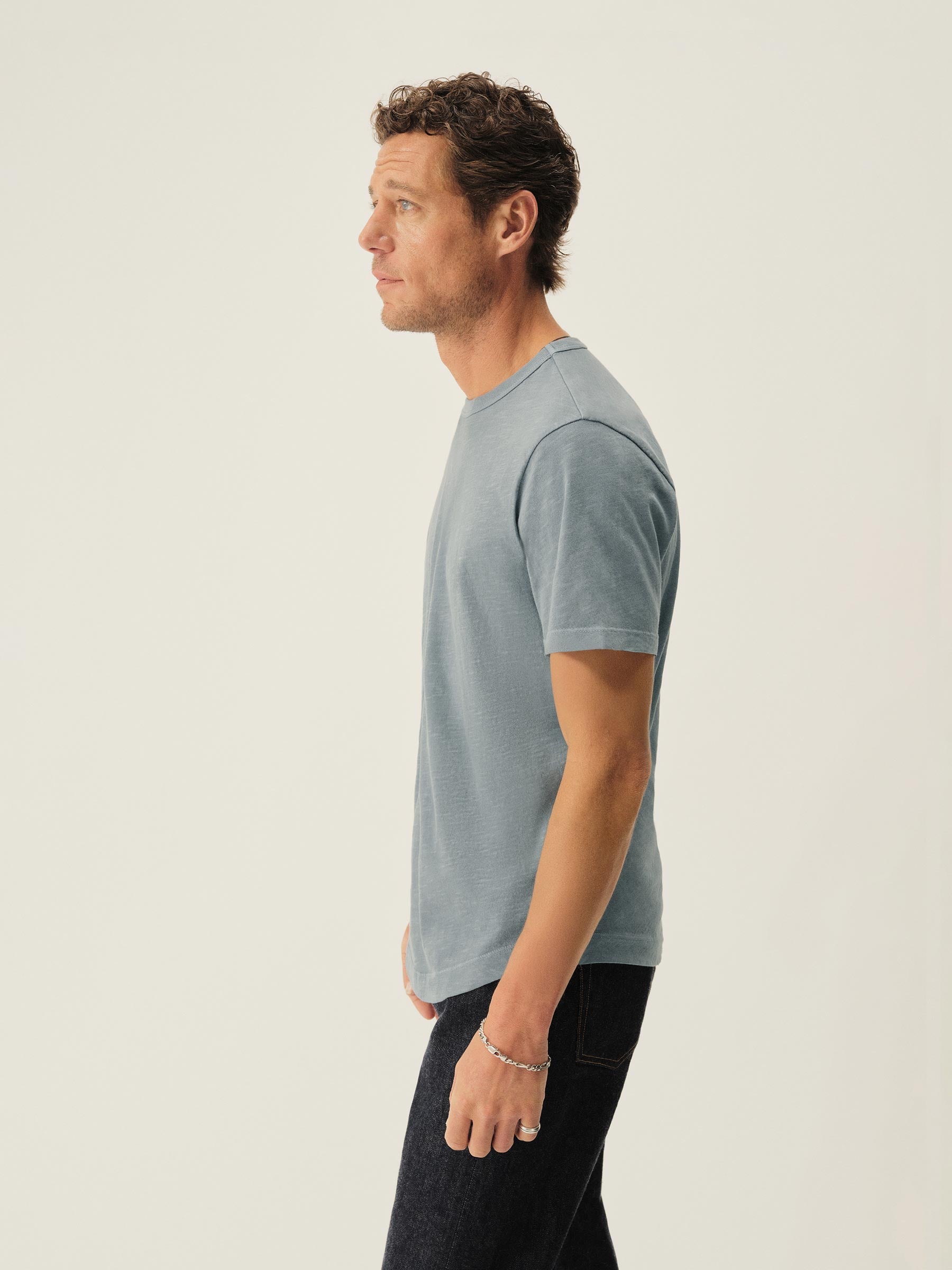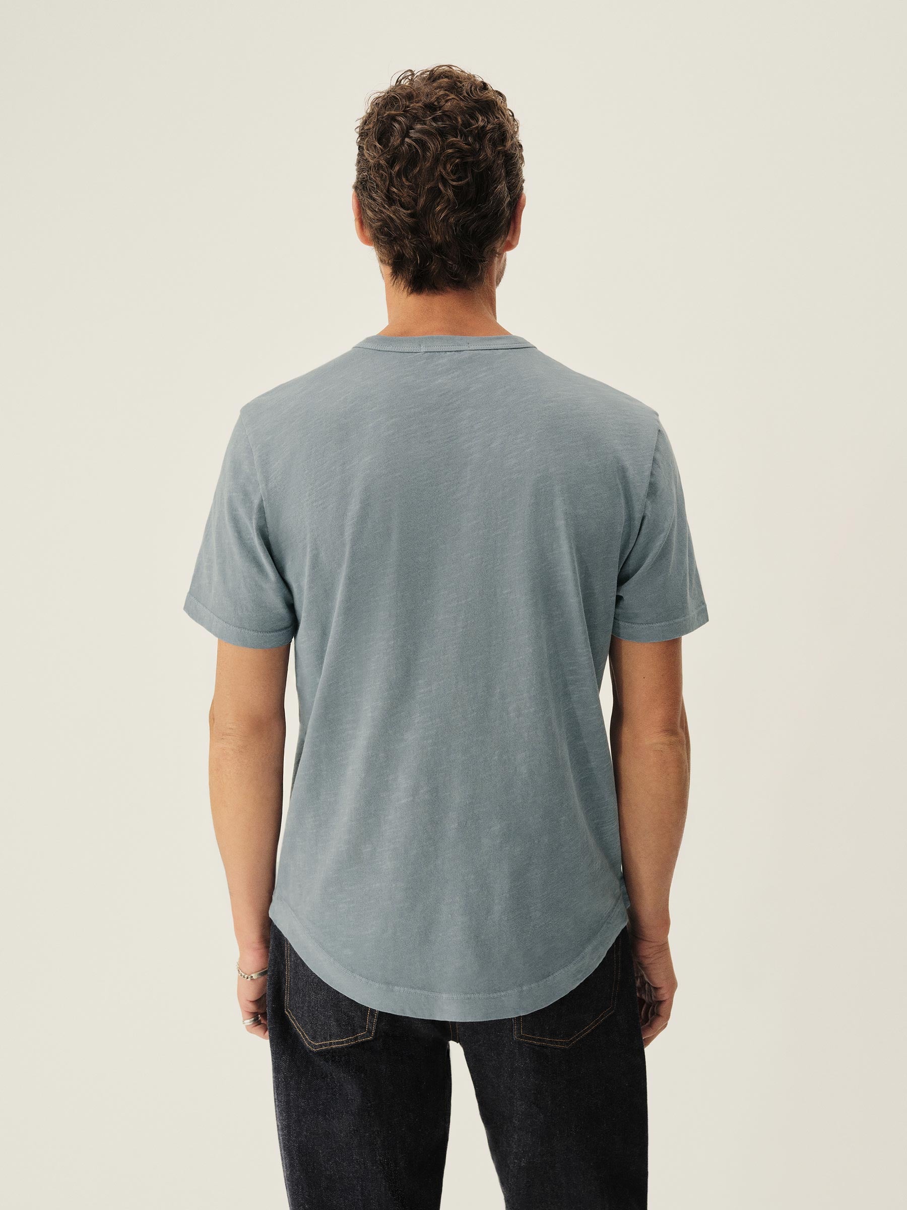 Our signature curved hem tee in USA-grown cotton with a light slub texture. Made at BM Knitting Mills in Mohnton, PA.
