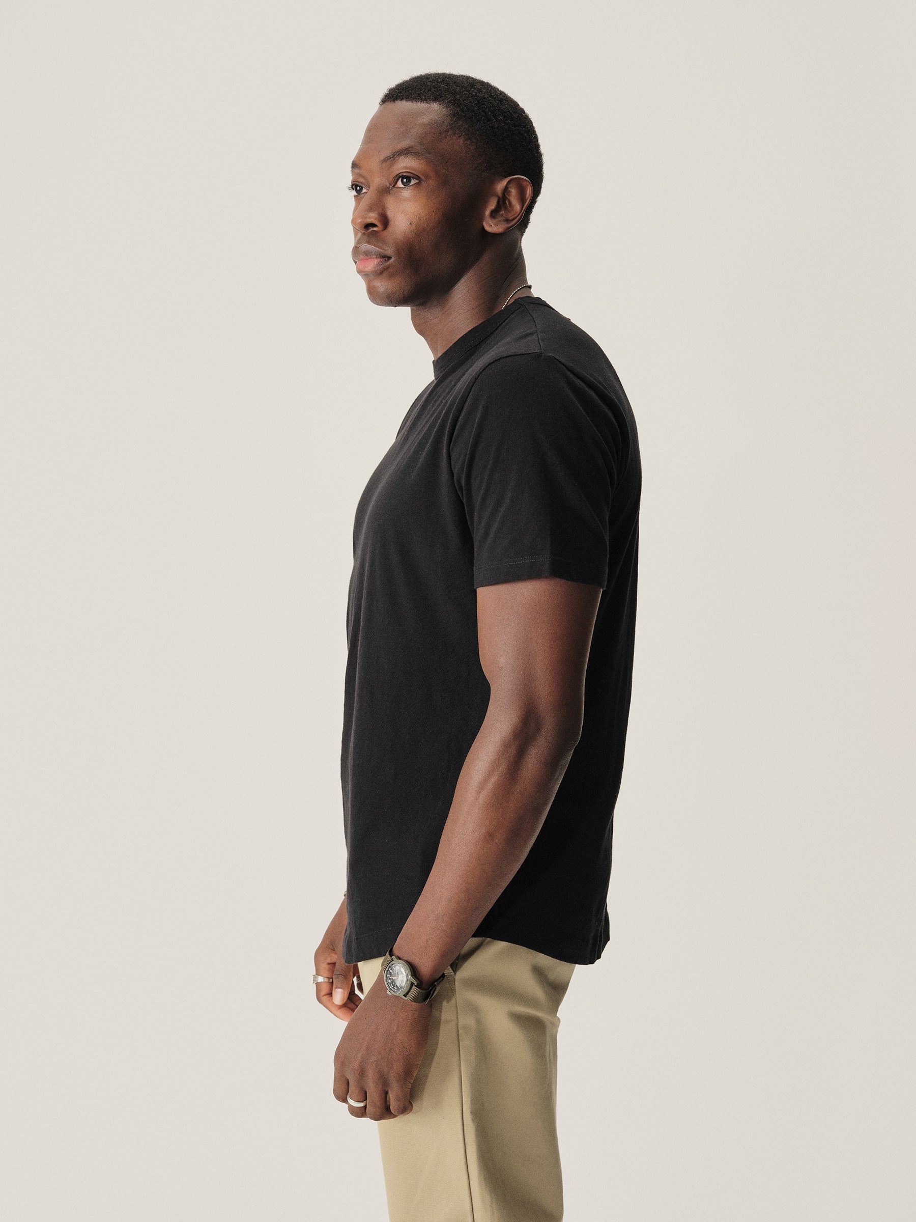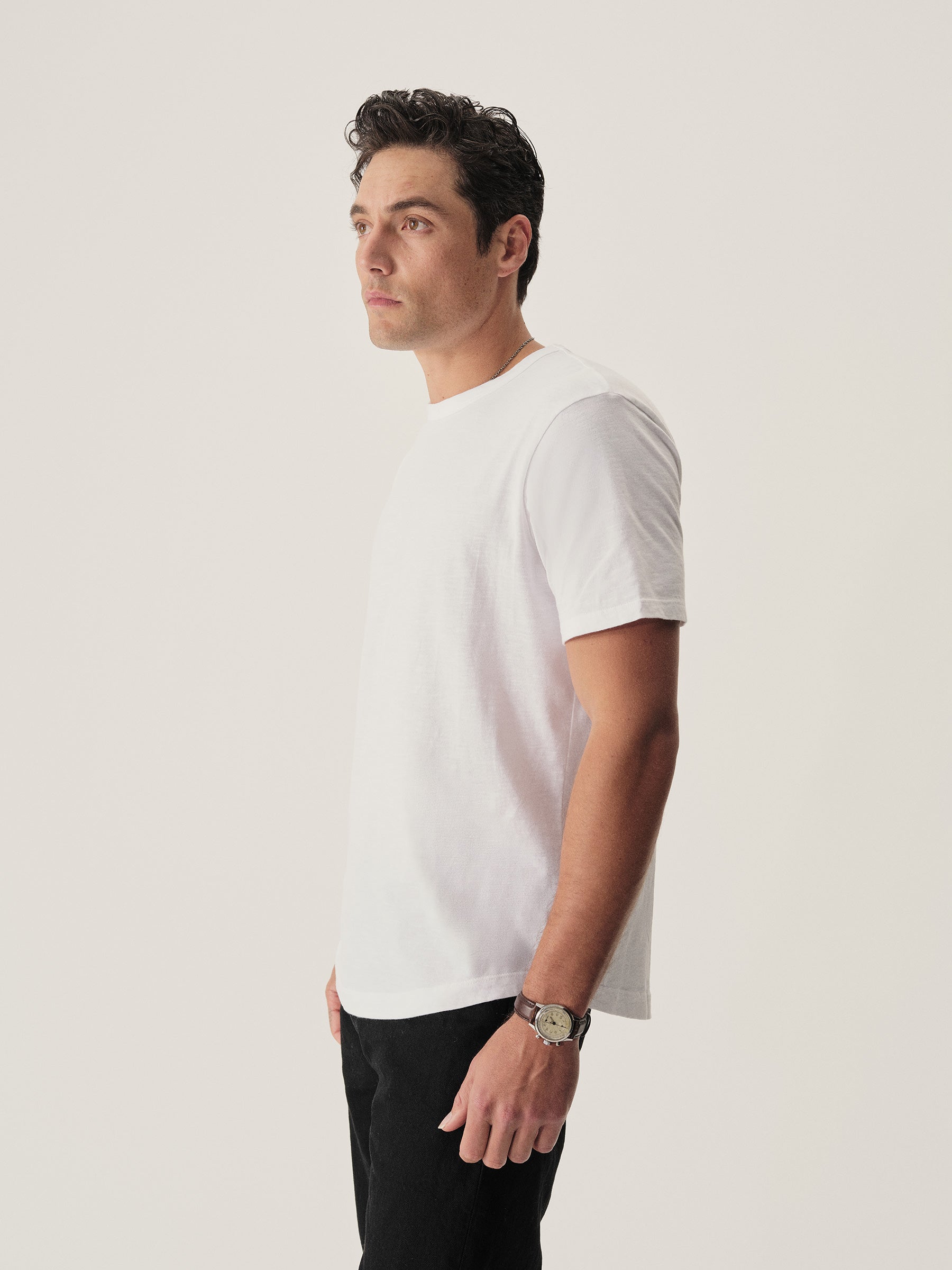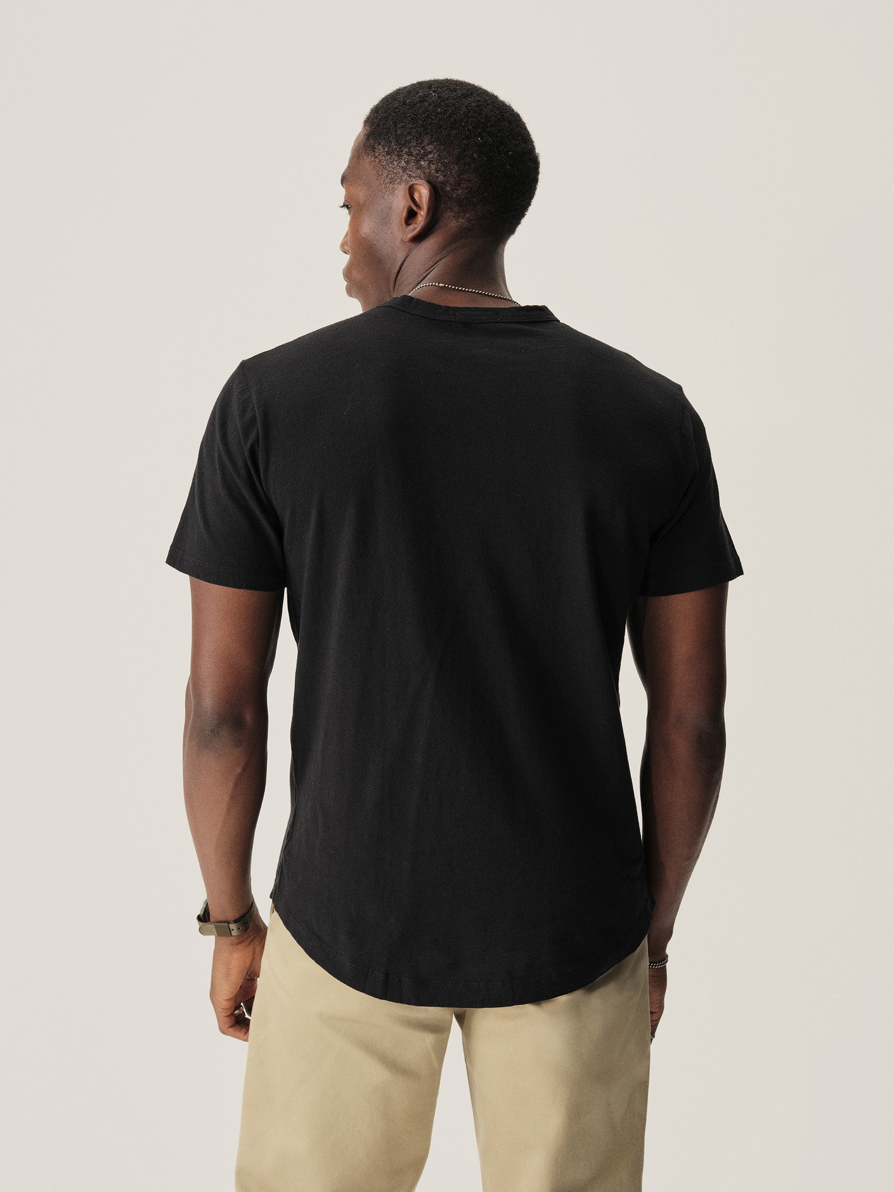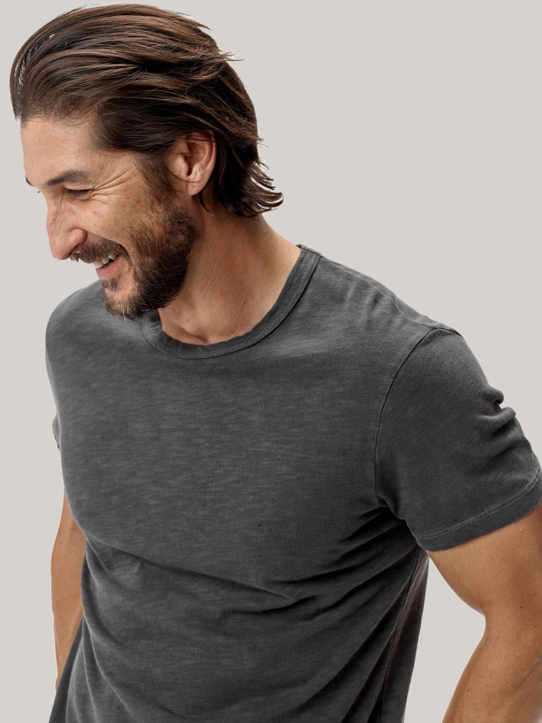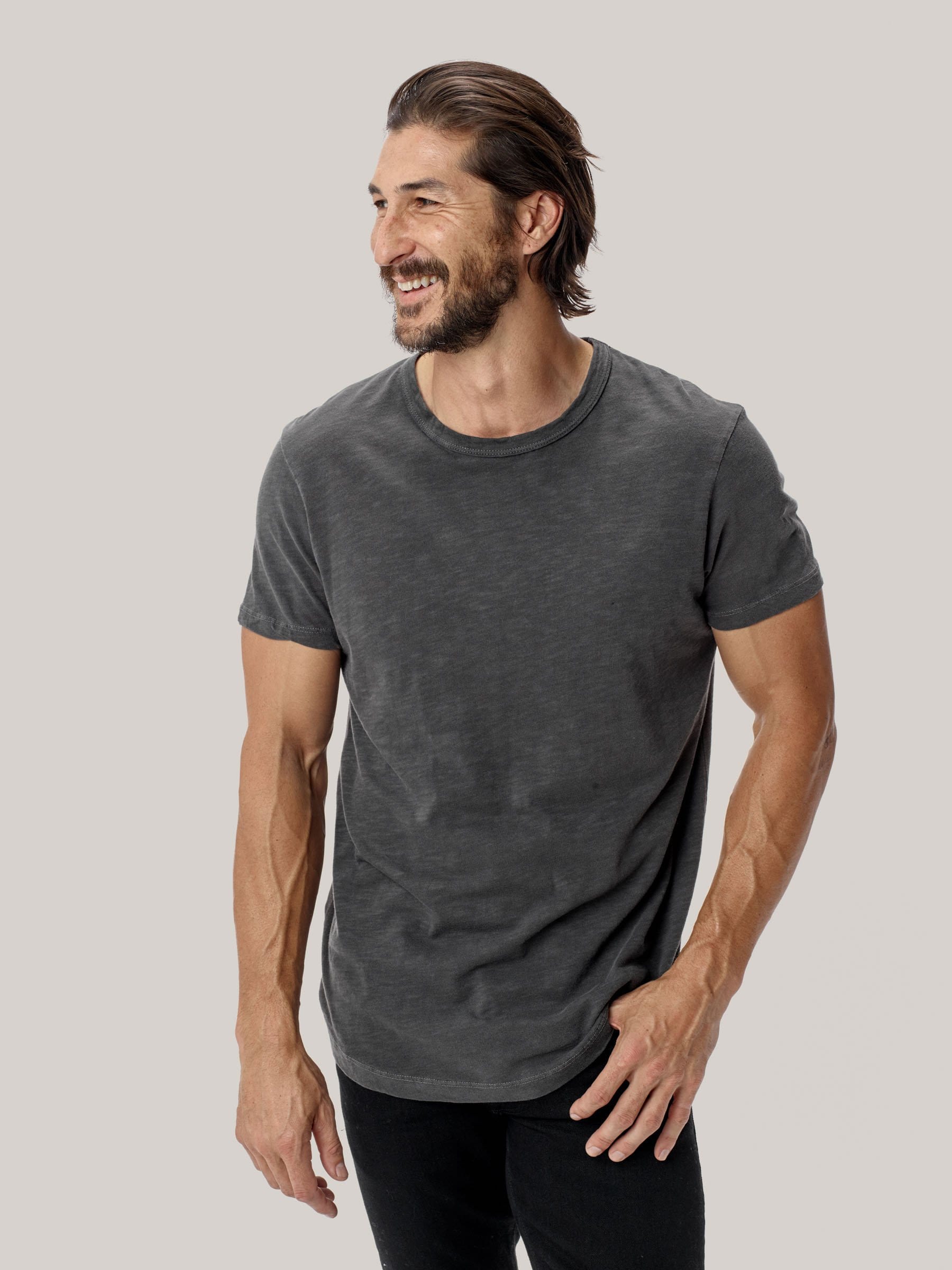 Our signature curved hem tee in USA-grown cotton with a light slub texture. Made at BM Knitting Mills in Mohnton, PA.