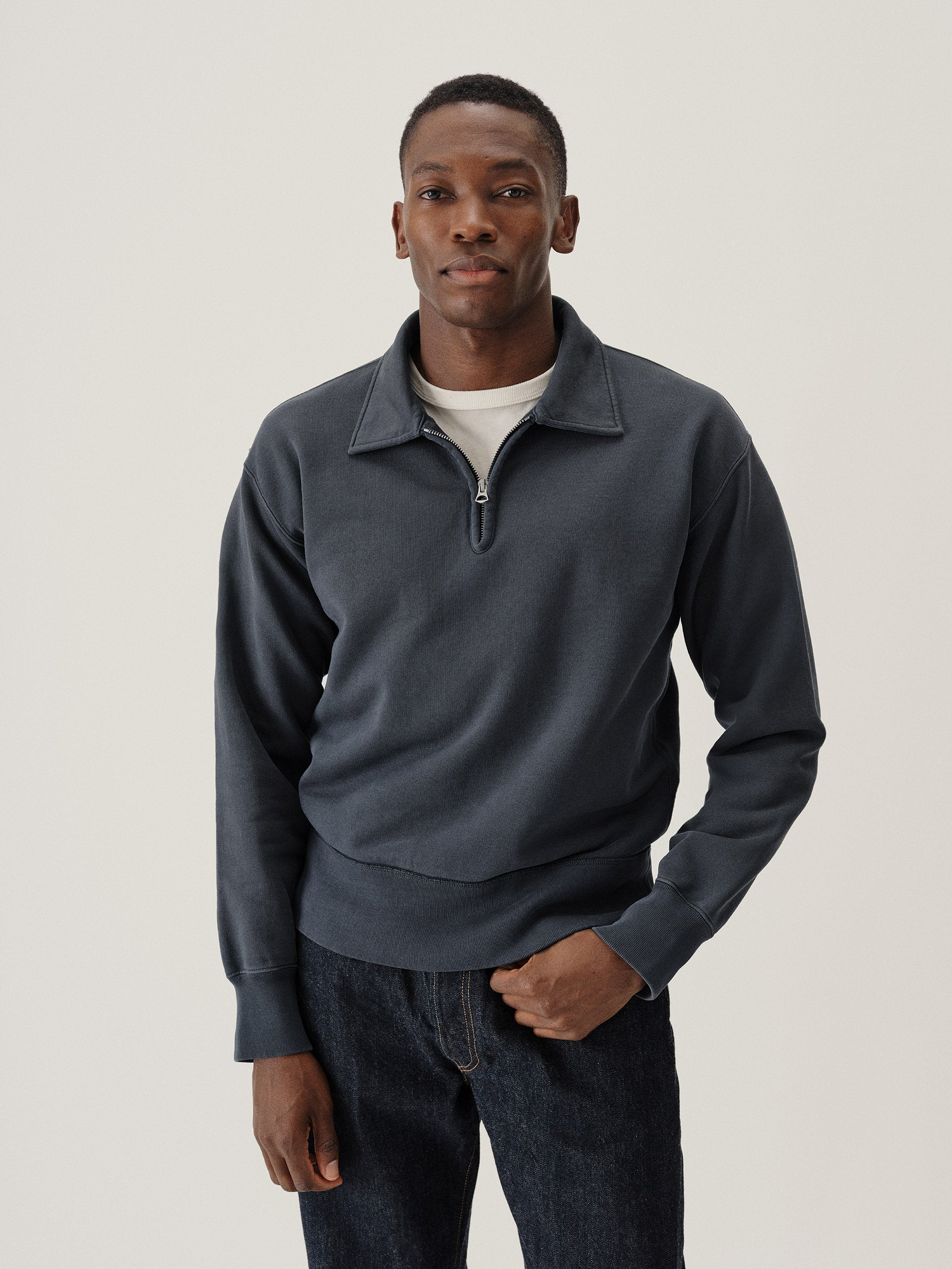 Classic midcentury-style quarter-zip sweatshirt in our custom-milled French terry fleece.