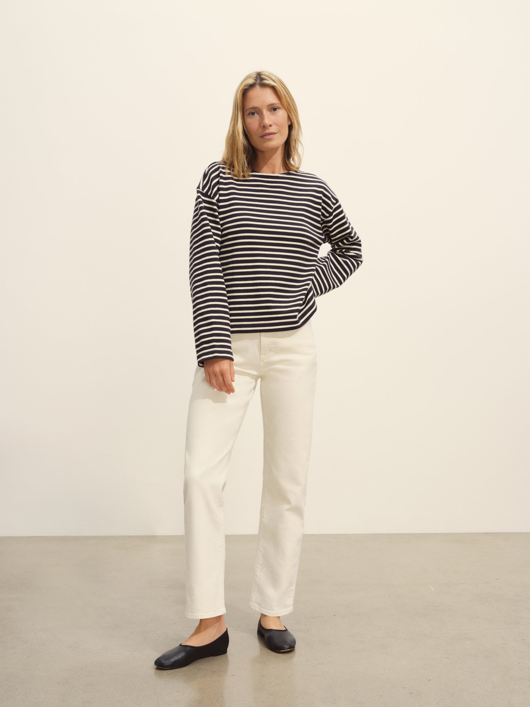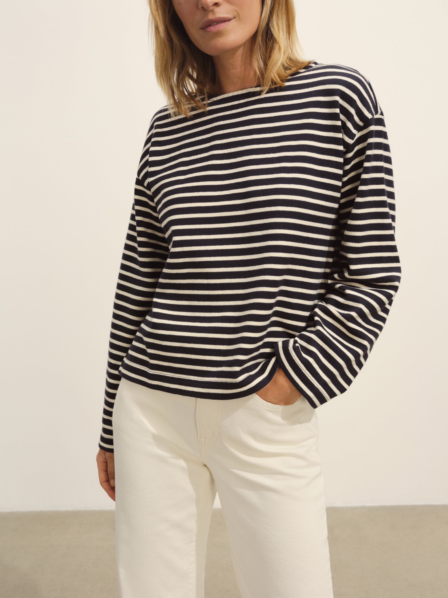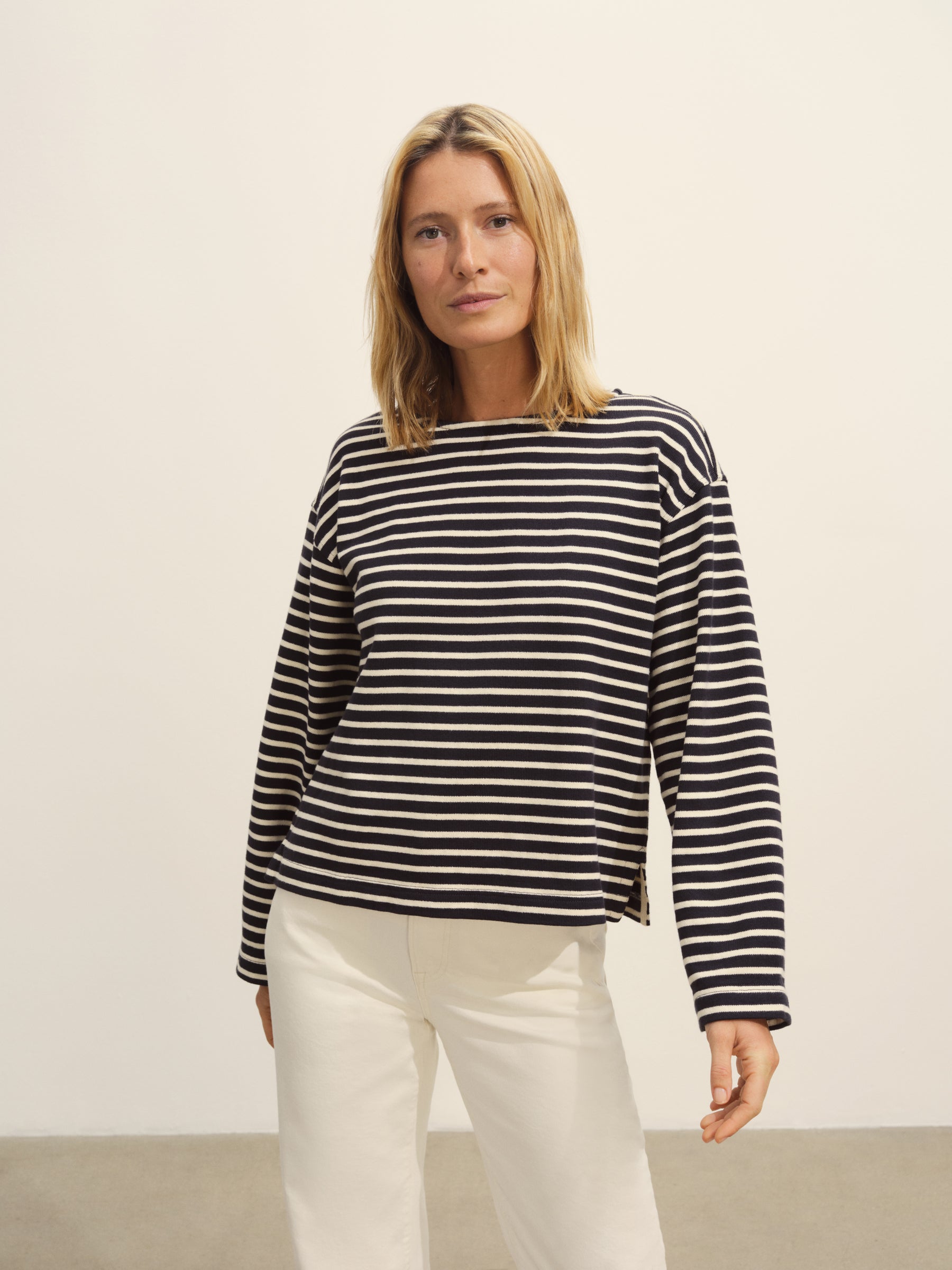 Long-sleeve boatneck tee cut from sturdy 350 GSM cotton jersey.