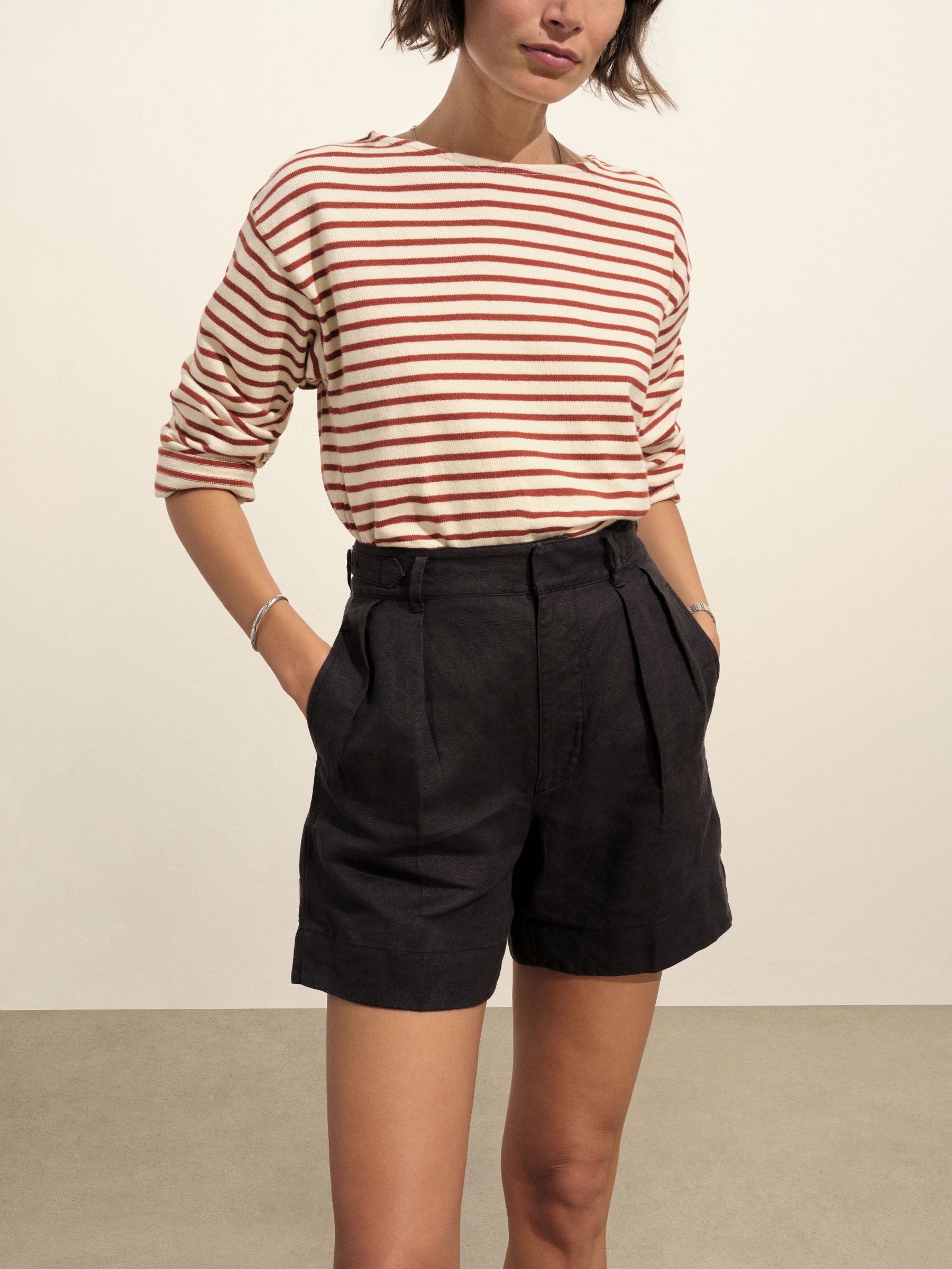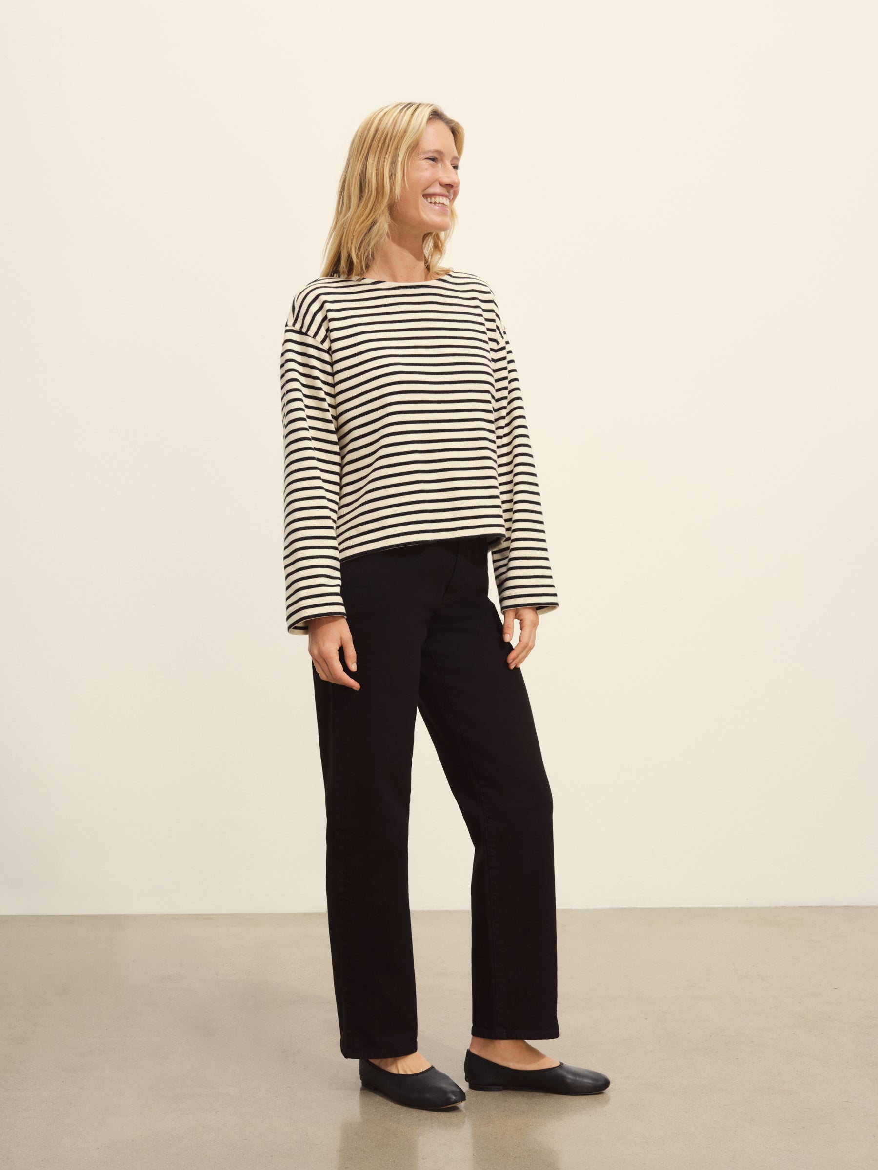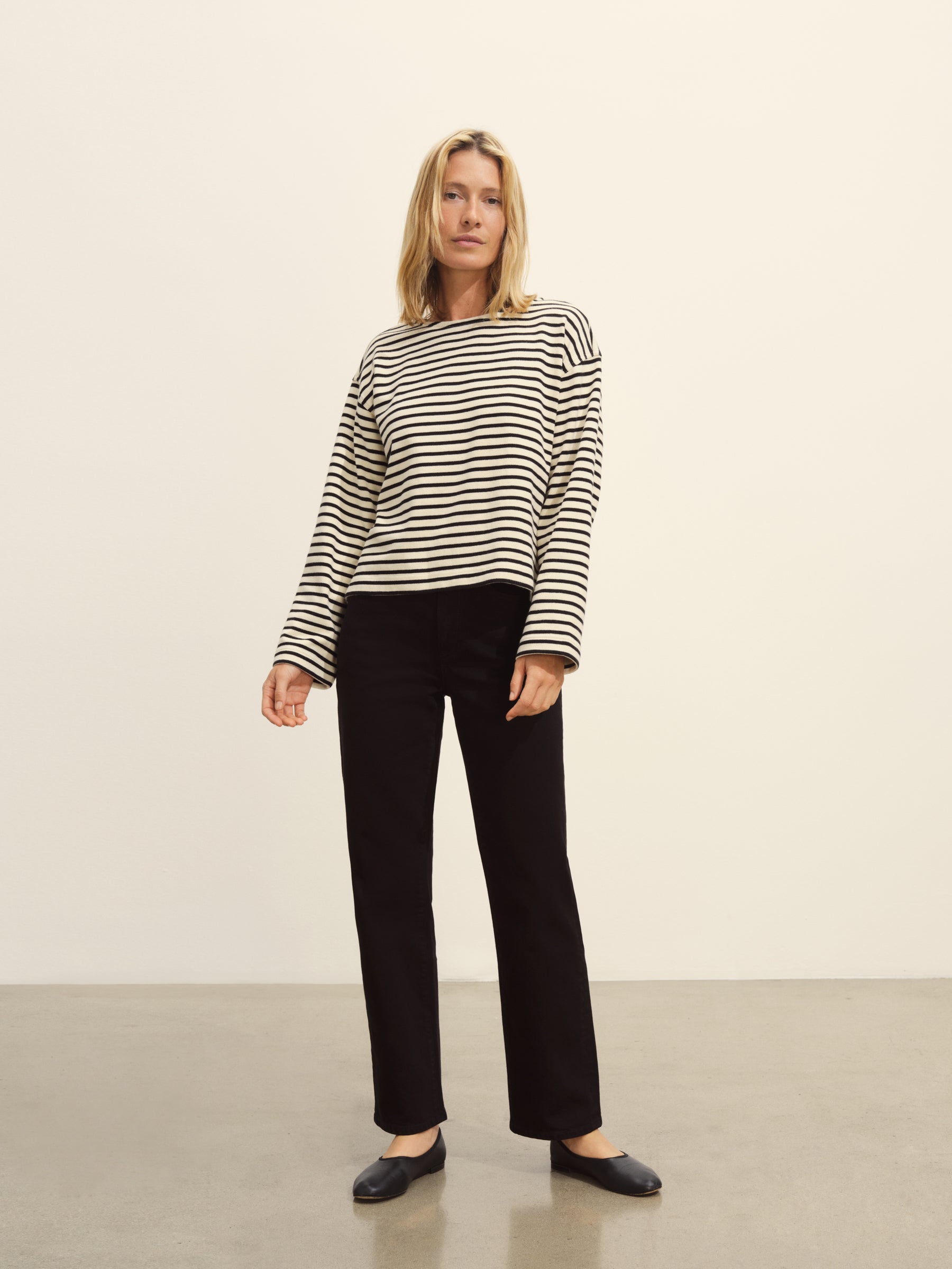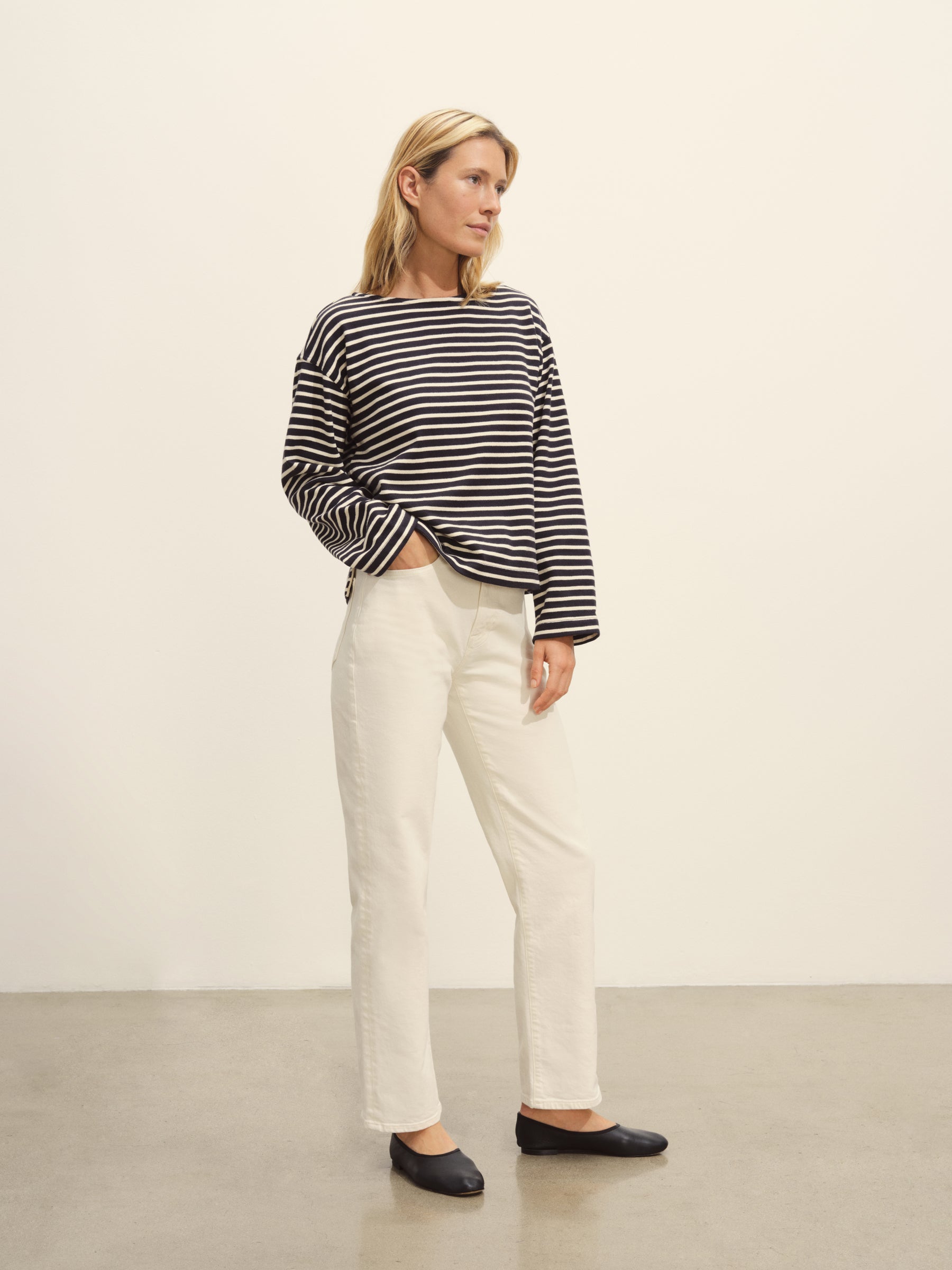 Long-sleeve boatneck tee cut from sturdy 350 GSM cotton jersey.
