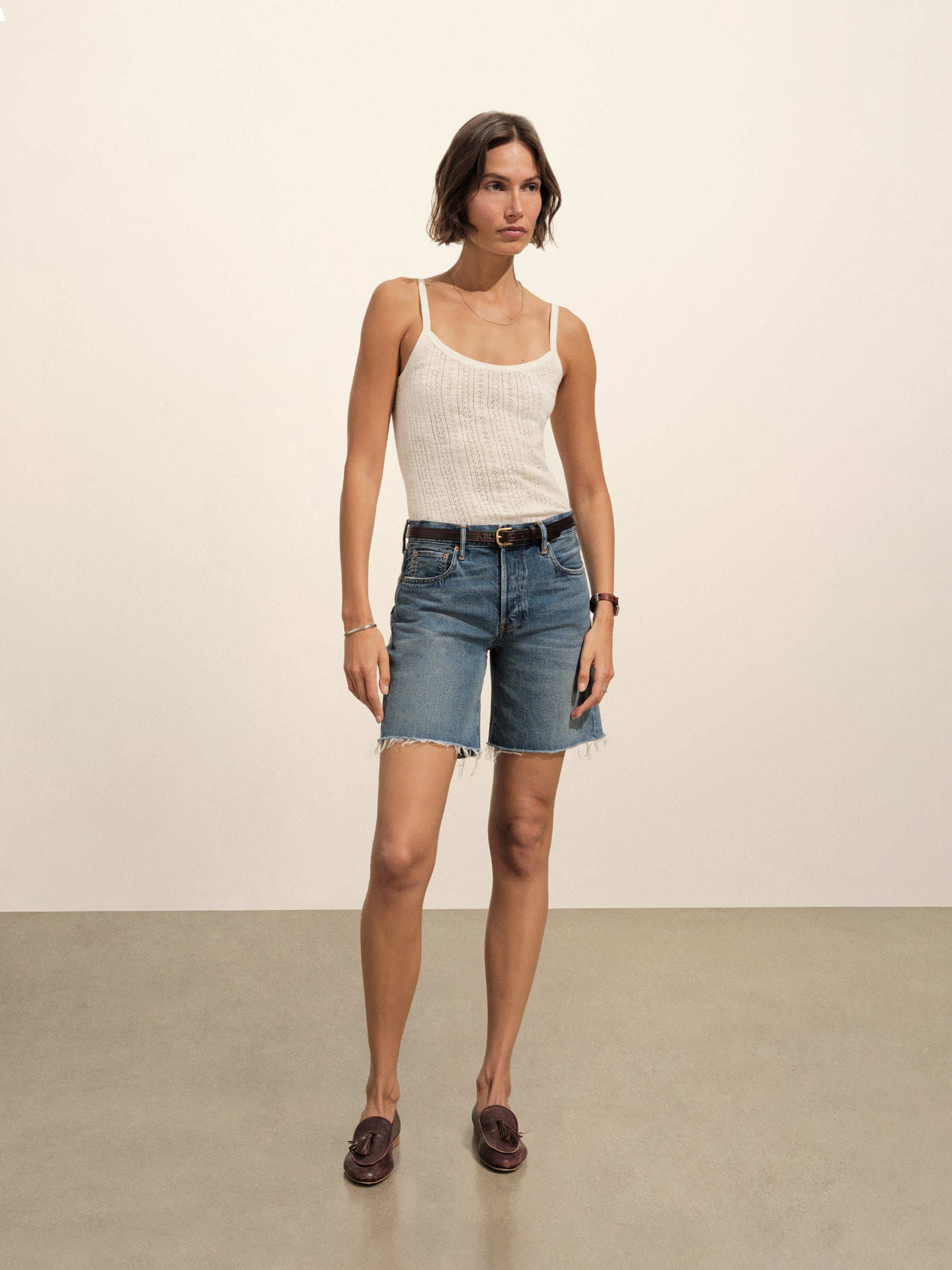 Vintage-inspired pointelle scoop camisole made from an airy cotton/linen blend.