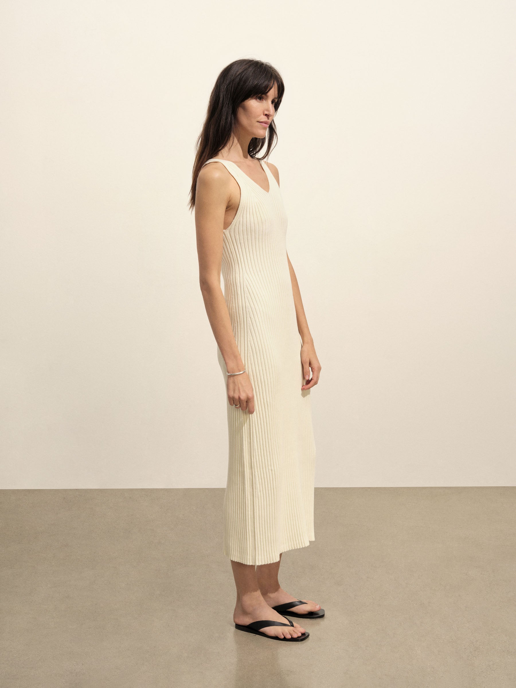 Slim-fit, ribbed V-neck tank dress knit from 100% Italian cotton yarn.
