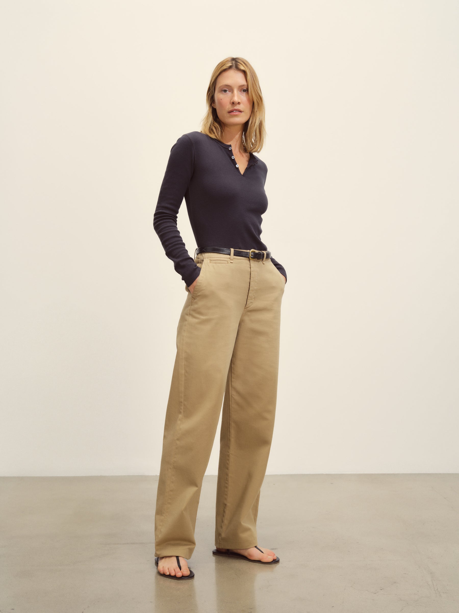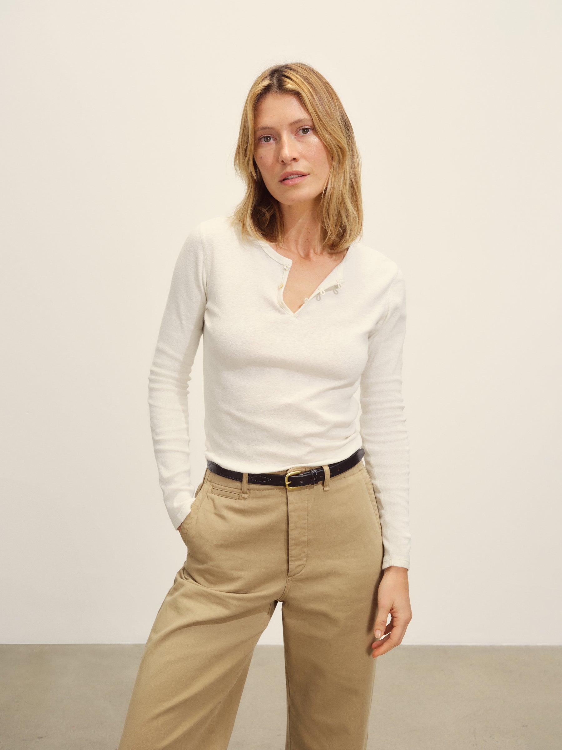 Slim fit long sleeve henley cut from a light superfine cotton rib with refined details.