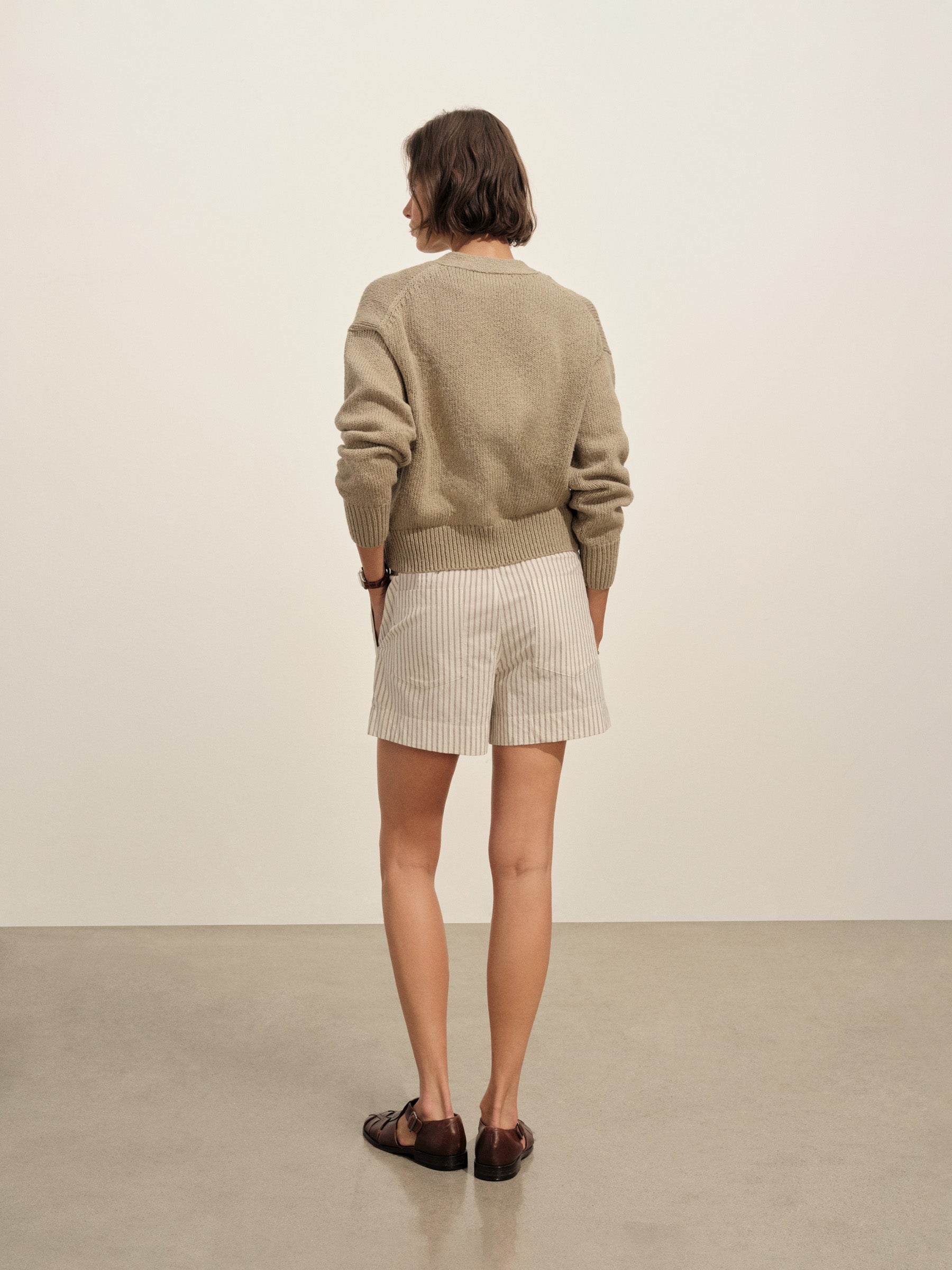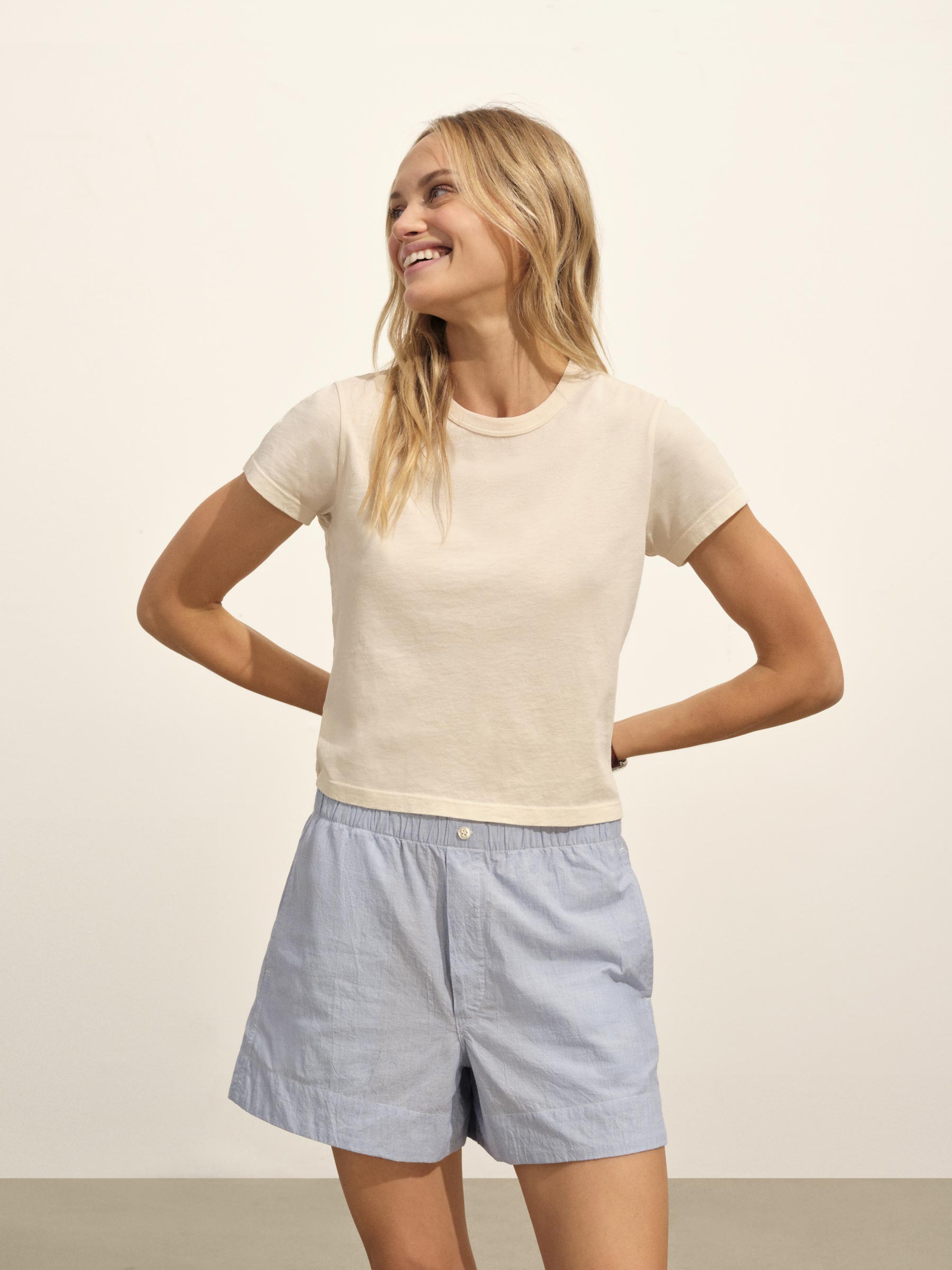Military-inspired pull-on shorts cut from lightweight cotton plainweave.