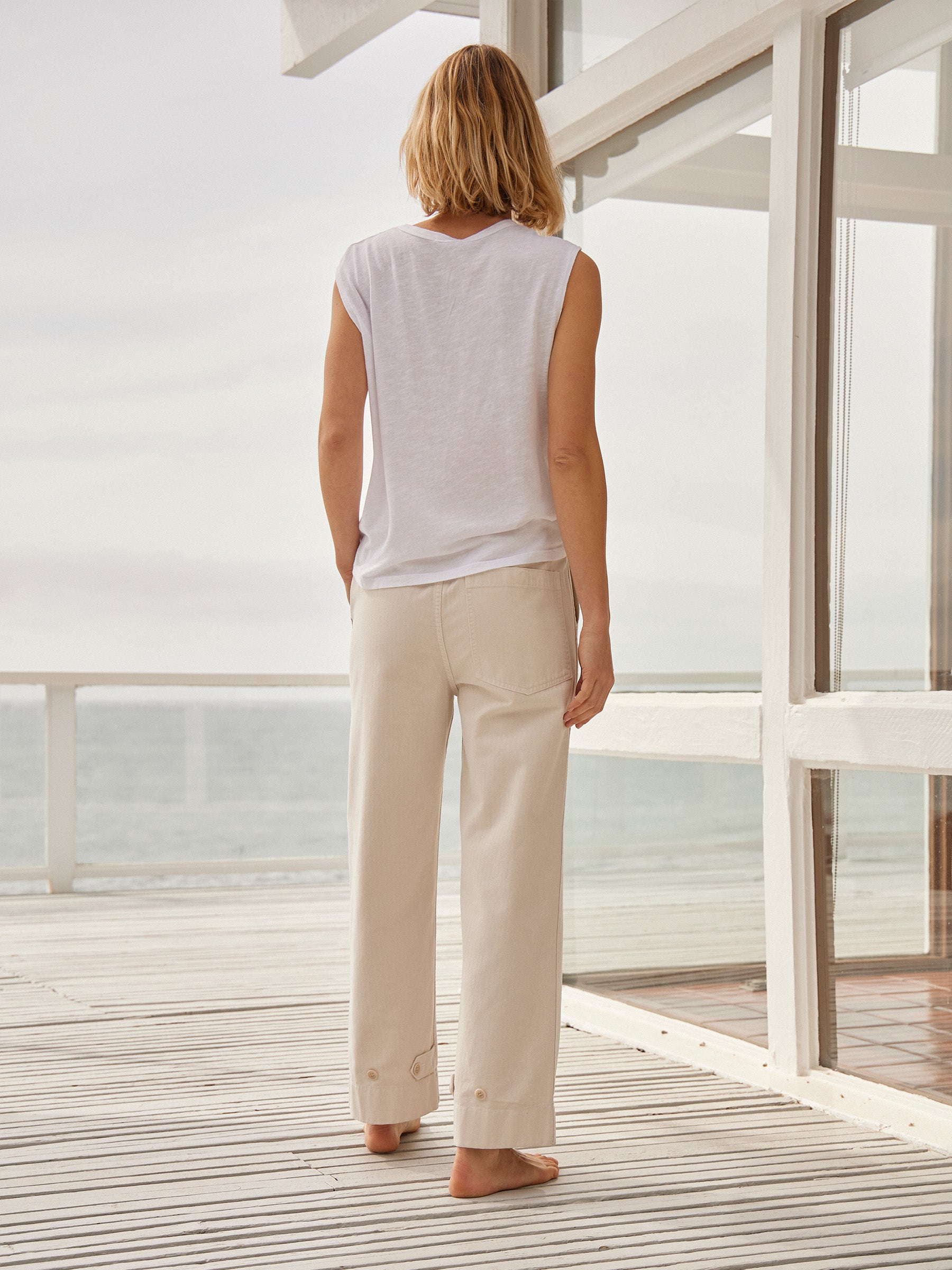Relaxed muscle tank with a straight hem, cut from 125 GSM cotton jersey with light slub texture.