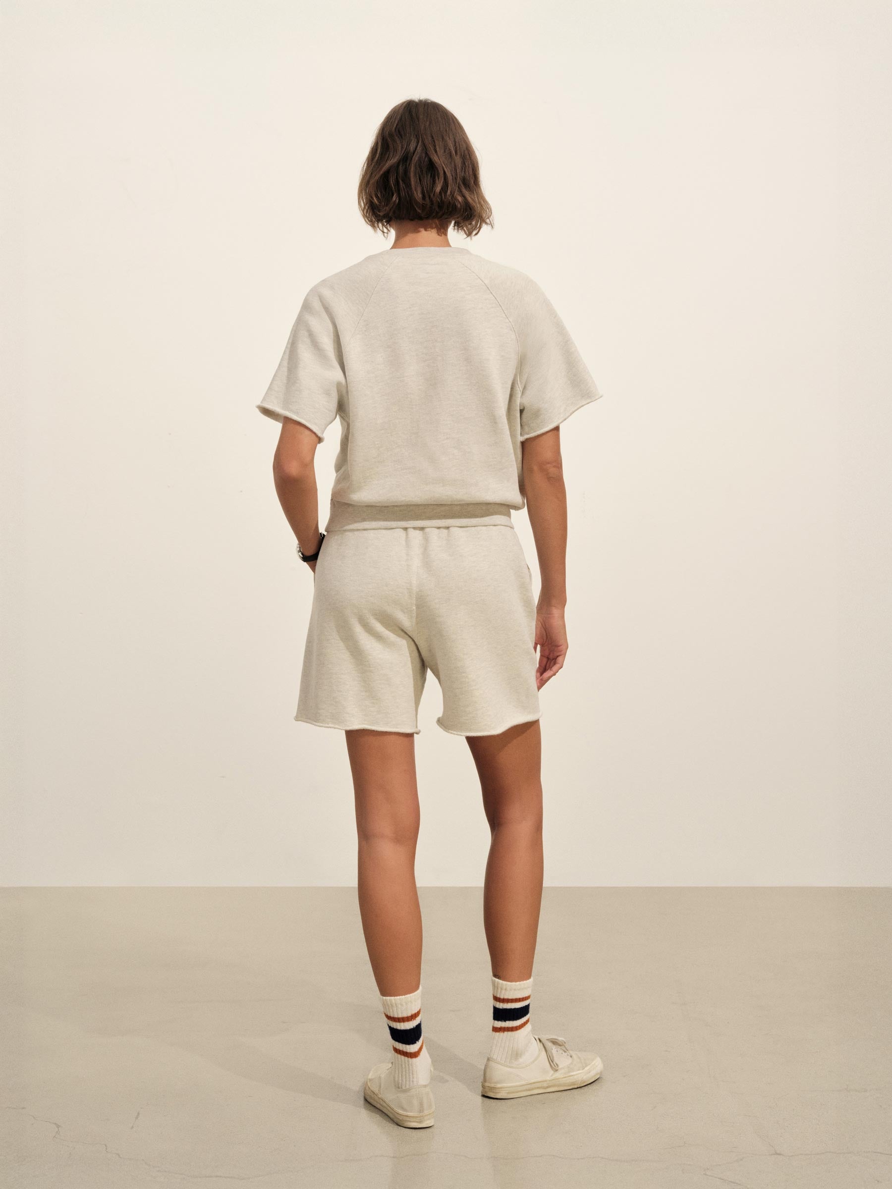 Relaxed crewneck sweatshirt with cut-off sleeves in soft French terry with a semi-brushed back.